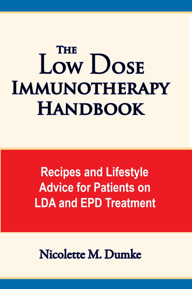 The Low Dose Immunotherapy Handbook provides practical help and encouragement for allergy sufferers who are taking treatment with LDA or EPD. It tells the history of EPD and LDA, gives the principles behind the treatment, and provides information on how to use and personalize the very mixed diet as well as explaining how it works. The book provides 84 recipes to help patients on low dose immunotherapy know what to eat around the time of the treatments and how to prepare these foods. The recipes include 39 for the shot-time or EPD diet made only with the foods allowed during the critical period, 9 recipes for "eating exotic" around your shots, and 36 recipes for the very mixed diet. It also includes organizational information and a sample "to do list" to help you get ready for your shots. For more information about the book (including a look inside), click here.